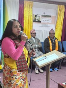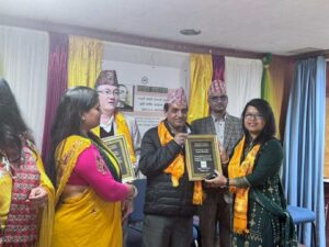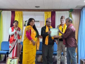 नवनिर्वाचित अध्यक्ष नविन शर्मालाई निवर्तमान अध्यक्ष हरिमाया अधिकारीले अध्यक्षको आसनग्रहण गराउनुभए पश्चात कार्यक्रमको दोस्रो सत्र प्रधान संपादक इश्वरी भट्टले संचालन गर्नुभएको थियो। यस सत्रमा संस्थालाई निवर्तमान कार्यसमितिमा रहेर सहयोग गर्नुहुने सबै पूर्व कार्यसमितिका पदाधिकारी एवं सदस्यहरूलाई धन्यबाद र कृतज्ञता प्रकट गर्दै सम्मानस्वरूप मायाको चिनो प्रदान गरिएको थियो।