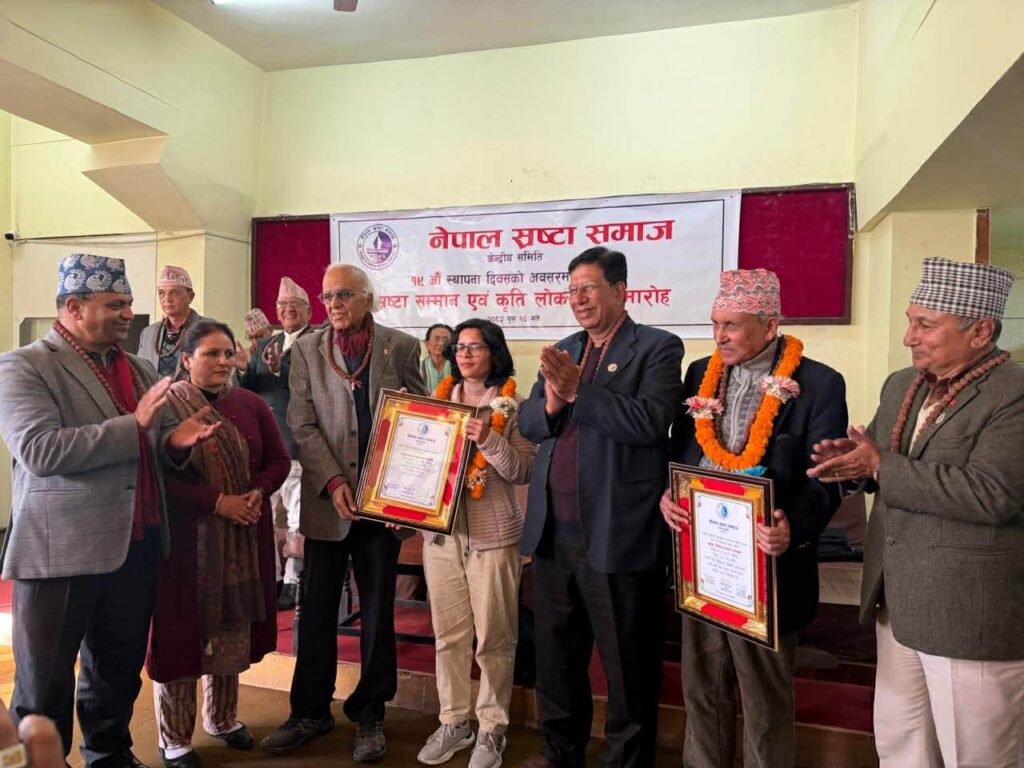 यसअघि समाजले आफ्नो स्थापना दिवसको अवसर पारेर बुधबार काठमाडौंमा एक भव्य कार्यक्रमका बिच केहि दिन अघि घोषित यस बर्षको शुभद्रा- विश्वराज स्रष्टा सम्मानद्धारा वरिष्ठ कवि प्रल्हाद पोखरेल तथा प्रसिद्ध कँडेल युवा स्रष्टा सम्मानद्धारा युवा साहित्यकार अनिता पन्थीलाई समर्पण गरेको थियो । सोही अबसरमा साहित्यकार जीवनाथ पोखरेलको कथासङ्ग्रह फेसबुकको करामत र कवि अम्बु बिहानीको मुक्तकसङ्ग्रह अतृप्त रहरहरुको लोकार्पण समेत गरेको थियो ।