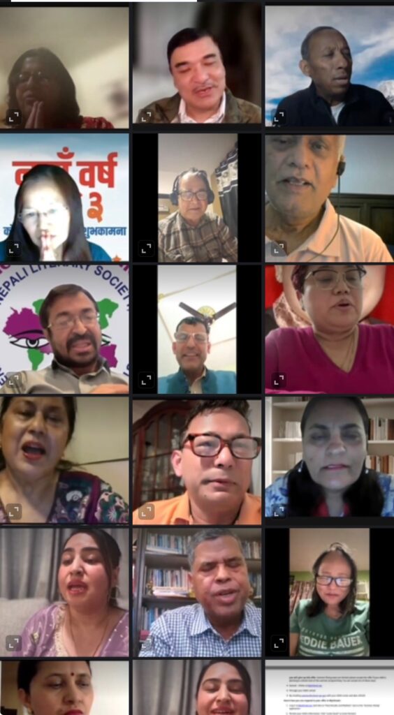 यसै क्रममा बिओटी सदस्य/महिला सदस्य, समालोचक साहित्यकार रश्मि भट्ट, साहित्यकारहरू न्युयोर्क च्याप्टर पूर्व अध्यक्ष पूनम काफ्ले, उपाध्यक्ष शान्ता अधिकारी, निवर्तमान अध्यक्ष लक्ष्मी श्रेष्ठ, नेपाली भाषा तथा संस्कृति केन्द्रकी सञ्चालिका, आदर्श गुरुआमाबाट सम्मानित पद्मालिंखा मगर, नेपाल मुक्तक प्रतिष्ठान अमेरिका शाखाका अध्यक्ष आनन्द श्रेष्ठ, डा. गोविन्द कोइराला, कवि कोइराला, ताराकिशन फाउन्डेशनका संस्थापक कवि किशन सिंह धामी, अनेसास न्युयोर्क च्याप्टरका सदस्यहरू शारदा क्षेत्री, सिन्धु पौड्याल, कोषाध्यक्ष पुष्पा अधिकारी गौतम, तुलसी एन, चित्रकार, सुधा तुलाधर थापा, गण्डकी पुत्र, कवि कोइराला, भगवती खनाल लगायतका सर्जकहरूले नयाँ वर्षको शुभकामनासहित कविता, गजल, हाइकु तथा मुक्तकमार्फत सामाजिक यथार्थ, प्रवासी जीवनका अनुभूति तथा पारिवारिक प्रेमका भावहरू प्रभावकारी रूपमा प्रस्तुत गर्नुभएको थियो।